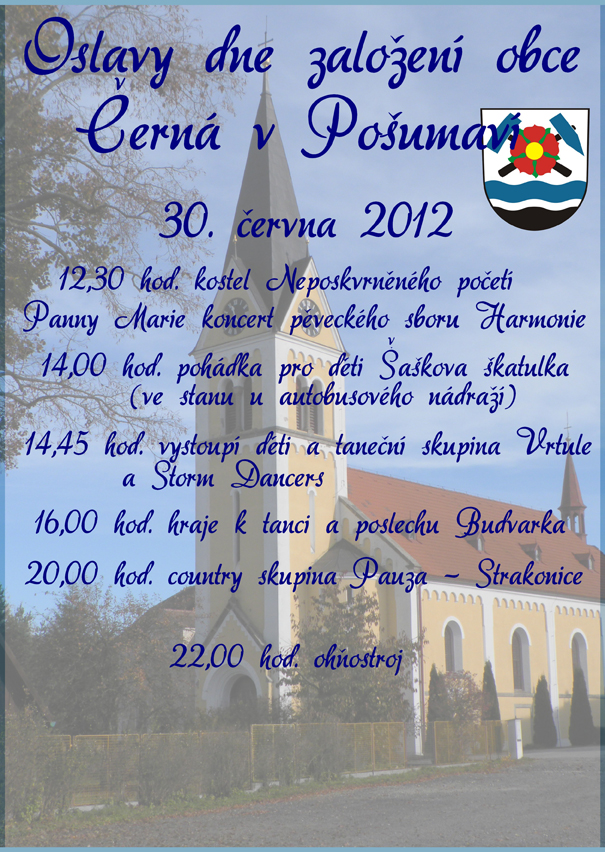 Obec Černá v Pošumaví si vás dovoluje pozvat na oslavy dne jejího založení, které se uskuteční 30. června 2012.