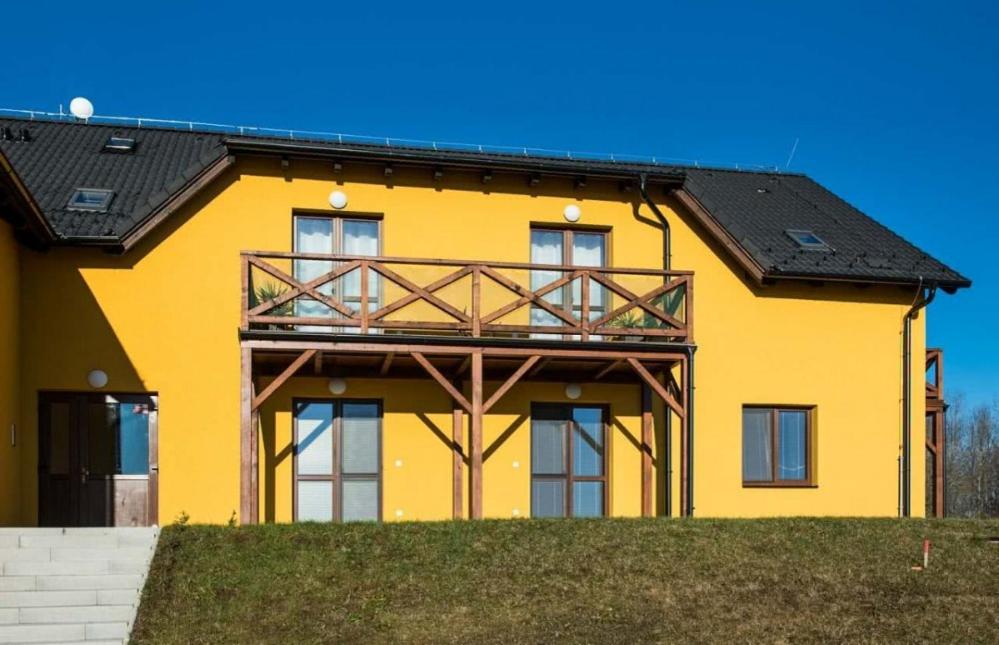 Pohodlí a styl: Moderní dvoupodlažní dům ve tvaru U skýtá velkolepý prostor. Užijte si komfortní vybavení apartmánů, včetně krbu a infrasauny v apartmánu Deluxe, ideální pro rodinnou dovolenou nebo romantický víkend.