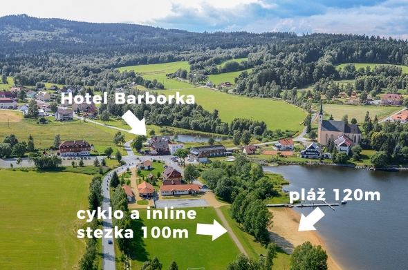 Vítejte v Hotelu Barborka, rodinném hotelu, který od roku 2005 patří mezi nejvyhledávanější místa pro odpočinek. Nacházíme se v atraktivní lokalitě na okraji obce Přední Výtoň, přímo u pravého břehu Lipna na jeho klidnější a slunnější straně. Díky naší poloze máte na dosah nejen krásy Šumavy, ale i rakouské hranice s přechodem Guglwald a oblíbené lyžařské areály Hochficht a Sternstein.