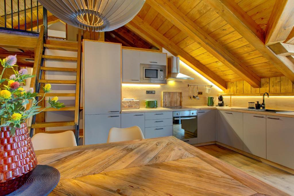 Plně zařízená kuchyně s myčkou, varnou deskou, lednicí, troubou, mikrovlnkou a rychlovarnou konvicí